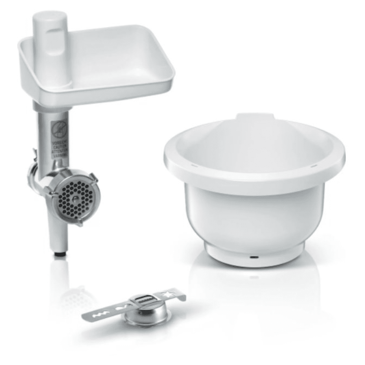 Sada BakingSensation na přípravu domácího pečiva s nástavcem na stříkané těsto, plastovou mísou a masomlýnkem pro rychlé zpracování těsta.
