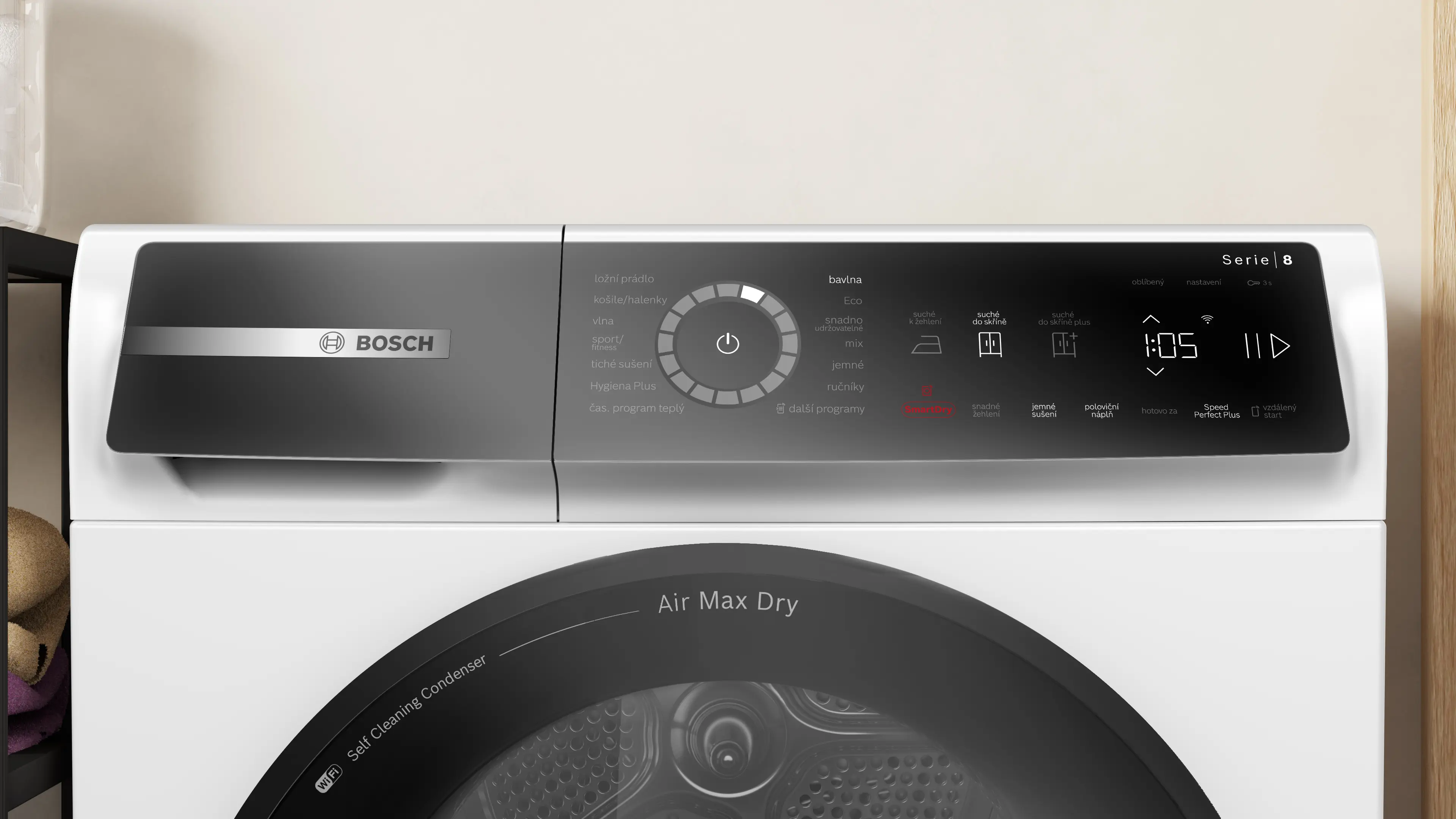 Panel s dotykovými tlačítky: intuitivní a pohodlné nastavení parametrů, informace o aktuálním stavu stroje a indikace při doplňování vody nebo odstraňování vodního kamene.