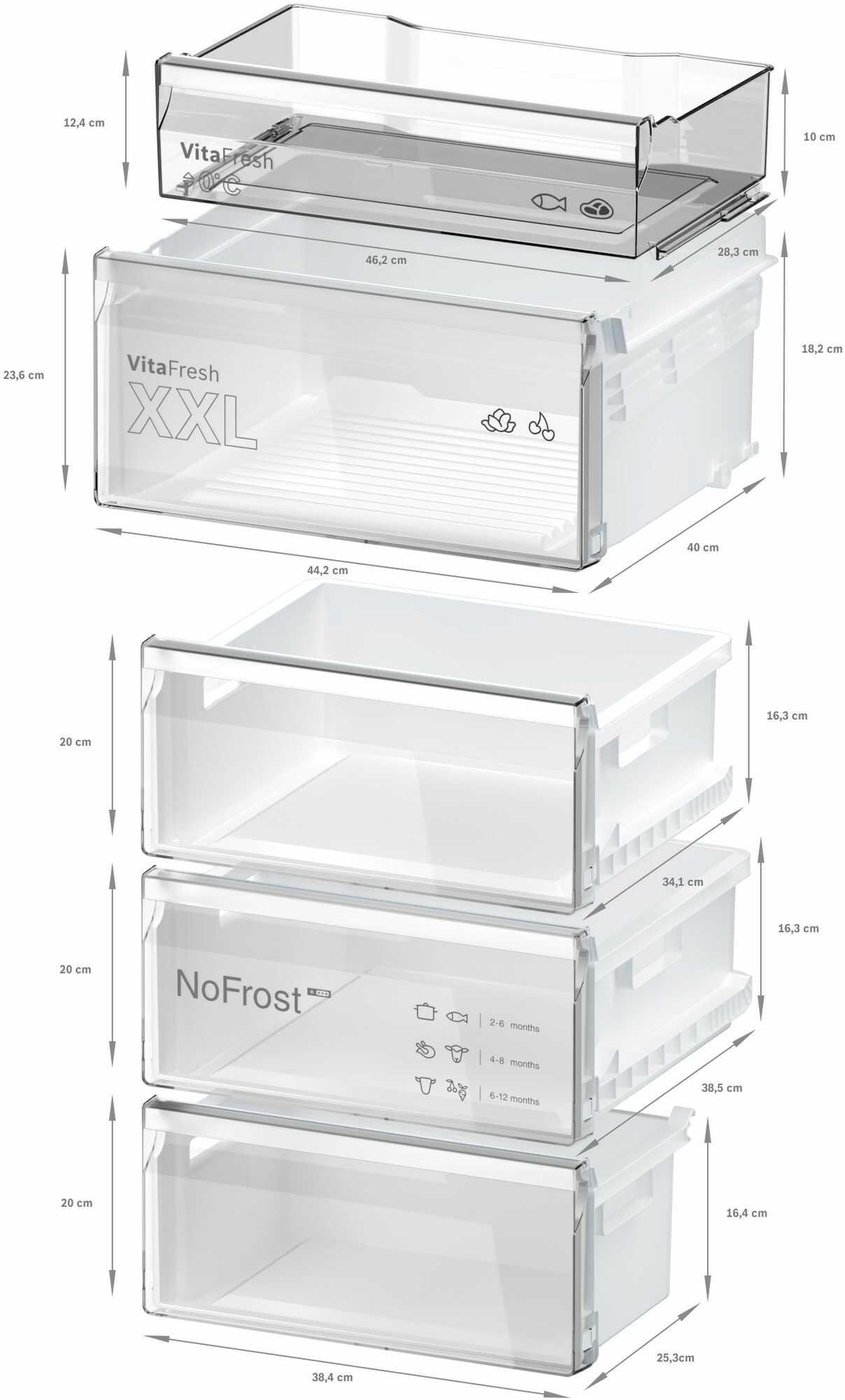 1 x zásuvka VitaFresh s regulací vlhkosti - udrží ovoce a zeleninu déle čerstvé a plné vitamínů