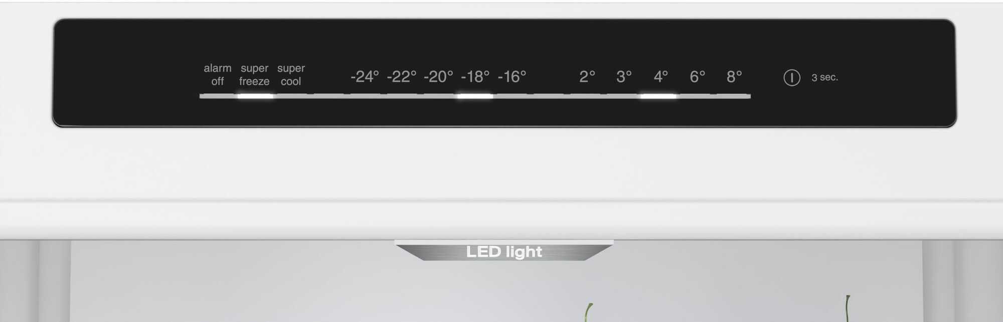 optický a akustický varovný signál při zvýšené teplotě ve vnitřním prostoru mrazničky