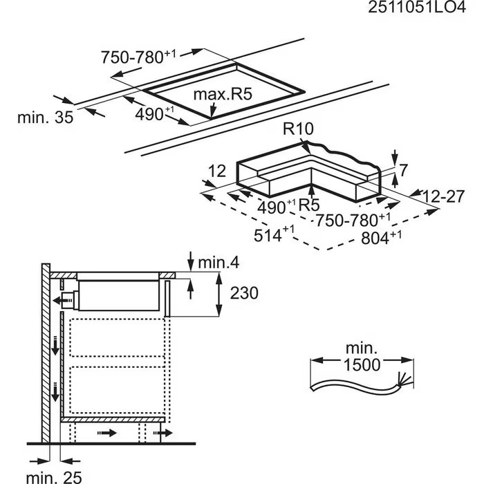 | Rozměry pro vestavbu | 225x750 - 780x490 mm |