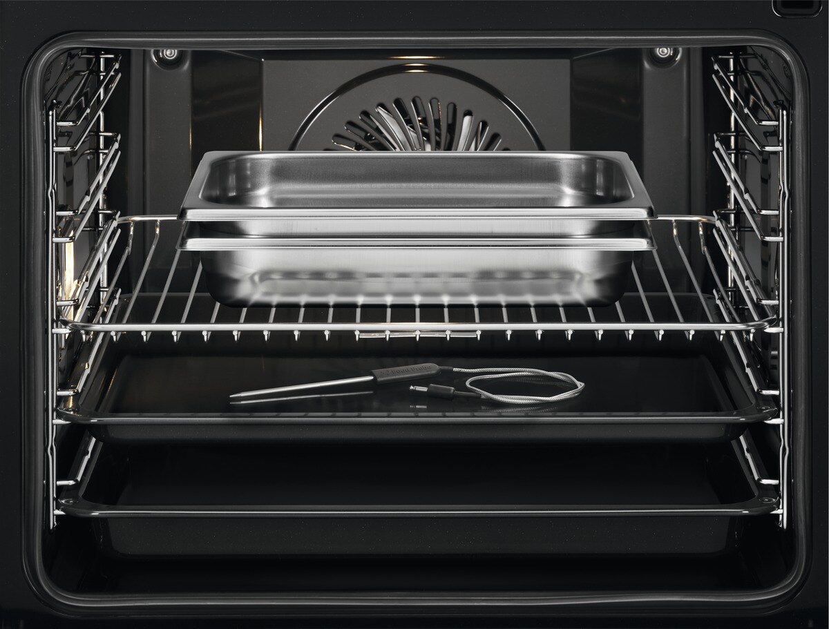 Teplotní sonda: Teplotní sonda je podstatná pro rozhodnutí, zda je již pokrm připraven. Je přímo spojena s ovládacím panelem a pracuje jako teploměr. Zasunete sondu do středu masa nebo ryby, nastavíte teplotu a až bude pokrm upečen tak, jak si přejete, budete na to upozorněni.