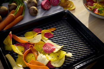 ![]() | Air Fry Chutná smažená jídla i v domácích podmínkách.Proč si nevyrobit vlastní bramborové lupínky? Anebo si namísto brambor chcete připravit chipsy z čerstvé zeleniny? Jednoduše položte tence nakrájené brambory nebo jinou zeleninu na grilovací plech Air Fry |
