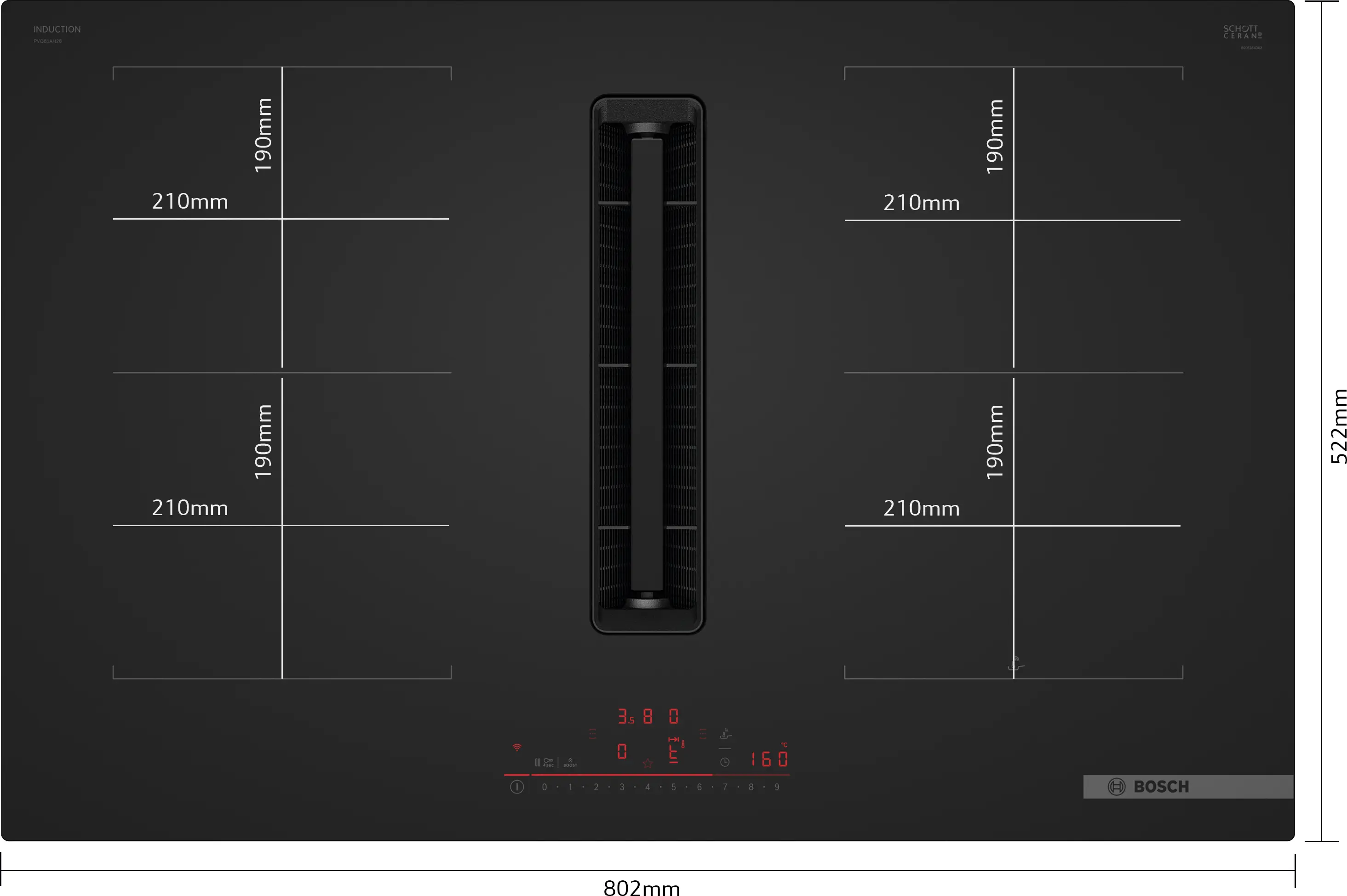 | Rozměry varných zón | 4 x (19,0 x 21,0 cm) |